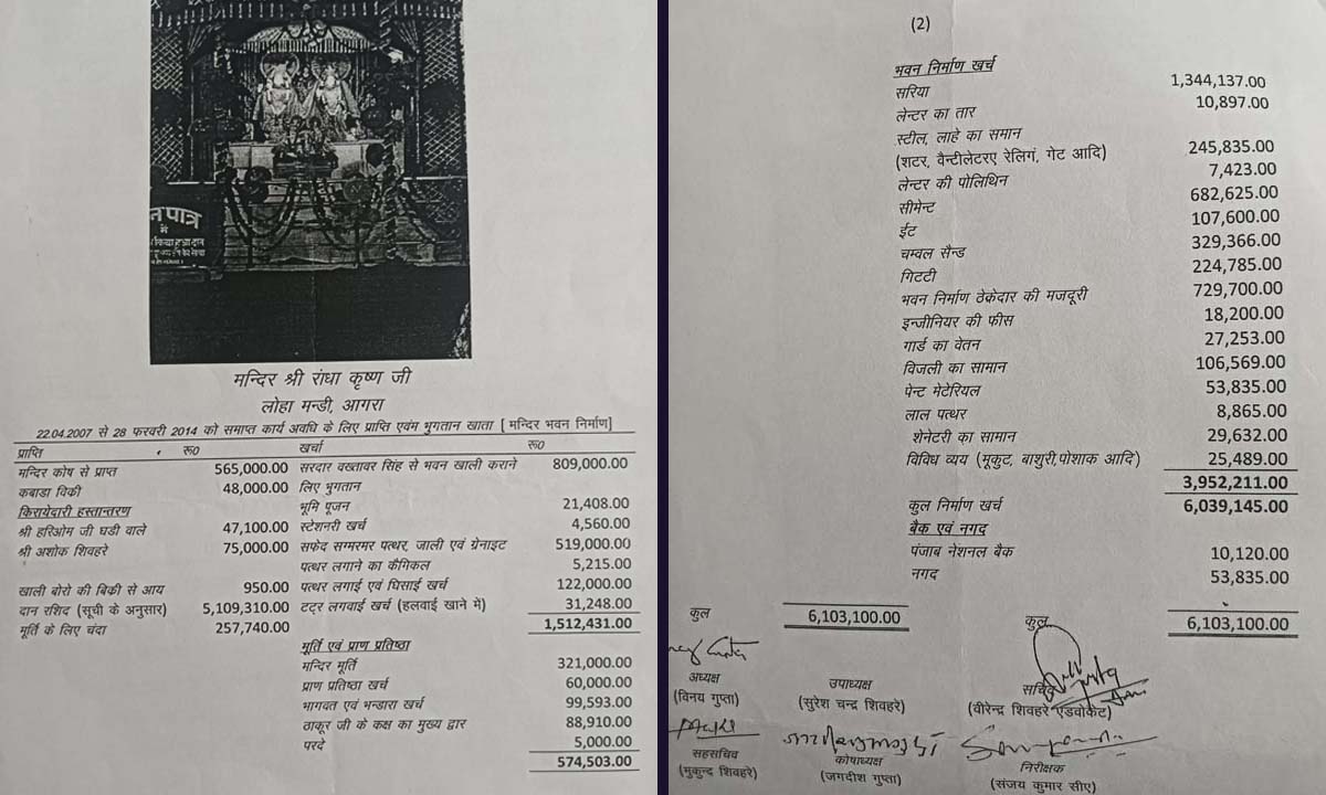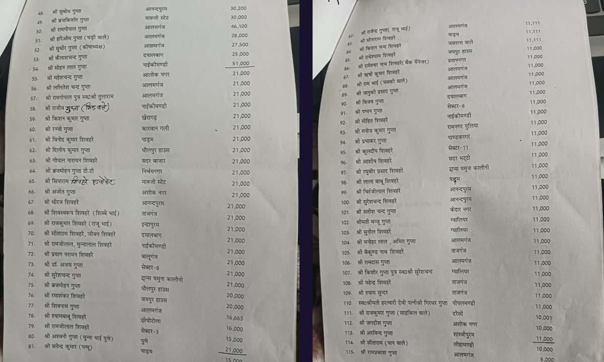 खैर, इस तरह हमें समाज से 51 लाख रुपये से अधिक का चंदा मिला था। आय-व्यय के कागज मेरे पास आज भी मौजूद हैं। जिनके चित्र मैं नीचे प्रस्तुत कर रहा हूः-