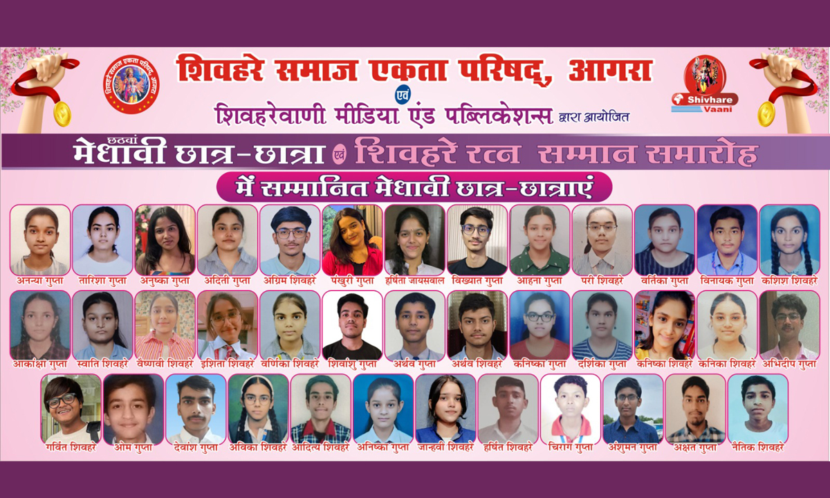 10…..9……8……..उल्टी गिनती शुरू हो चुकी है। ‘मेधावी छात्र-छात्रा सम्मान एवं शिवहरे रत्न’ समारोह को अब 24 घंटे से भी कम समय रह गया है। दाऊजी मंदिर सभागार में रविवार, 5 अक्टूबर को सुबह 10.30 बजे से शिवहरे समाज के उन 38 बच्चों को सम्मानित किया जाएगा जिन्होंने दसवीं और बारहवीं की बोर्ड परीक्षाओं में उत्कृष्ट अंक प्राप्त किए हैं।