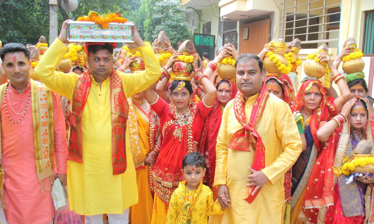 आवास विकास कालोनी में सेक्टर-7 के झूलेलाल पार्क स्थित कथा पंडाल में सुबह करीब दस बजे आचार्य अतुल कृष्ण जी महाराज ने वैदिक मंत्रोच्चार के साथ भागवत ग्रंथ और 108 कलशों की पूजा-अर्चना की। कलशयात्रा में सबसे आगे कथा परीक्षित श्री विकास गुप्ता शिवहरे शीश पर श्रीमदभागवत ग्रंथ लिए अपनी धर्मपत्नी श्रीमती सपना गुप्ता के साथ चल रहे थे। पीछे कलश धारण करने वाली महिलाएं चल रही थीं। यात्रा के सबसे अंत में कथाव्यास आचार्य अतुल कृष्ण जी महाराज रथ पर सवार थे। यात्रा भजनों की धुन पर आगे बढ़ते हुए सेक्टर-7 के विभिन्न मार्गों से होकर वापस झूलेलाल पार्क पर आकर संपन्न हुई जहां व्यासपीठ की विधिवत पूजा अर्चना की गई।
