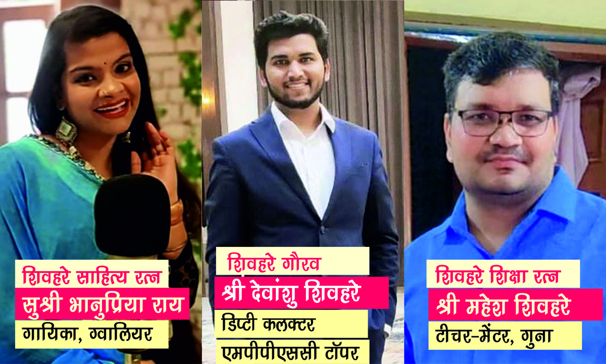 आगरा में 5 अक्टूबर (रविवार) को ‘मेधावी छात्र-छात्रा सम्मान’ एवं ‘शिवहरे रत्न सम्मान’ समारोह बहुत खास होने वाला है। समारोह में सम्मानित बच्चों को एमपीपीएससी परीक्षा टॉप कर डिप्टी कलक्टर बने विजयपुर के श्री देवांशु शिवहरे और उनके गुरू व मेंटर श्री महेश शिवहरे (गुना) द्वारा करियर संबंधी उपयोगी मार्गदर्शन प्रदान किया जाएगा। समारोह में श्री देवांशु शिवहरे को ‘शिवहरे गौरव’ सम्मान और श्री महेश शिवहरे को ‘शिवहरे शिक्षा रत्न‘ सम्मान प्रदान किया जाएगा। यही नहीं, ग्वालियर की उभरती गायिका व संगीत साधिका, तानसेन संगीत समारोह की ‘शान’ व आकाशवाणी कलाकार सुश्री भानुप्रिया राय को ‘शिवहरे साहित्य-कला रत्न’ सम्मान से अलंकृत किया जाएगा।