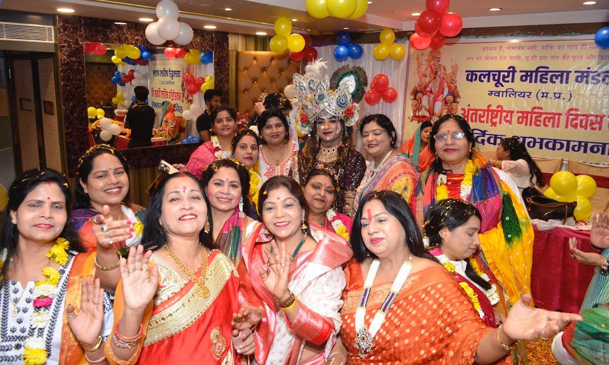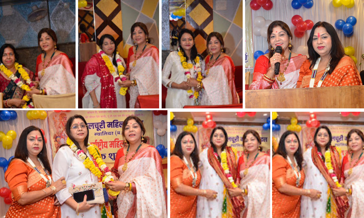 शाह एम्पोरियम होटल में 13 मार्च को आयोजित ‘अंतरराष्ट्रीय महिला दिवस एवं होली मिलन समारोह’ में कलचुरी महिलाओं को सम्मानित किया गया। कार्यक्रम का शुभारंभ अखिल भारतीय हैहय कलचुरी महिला महासभा की राष्ट्रीय संरक्षक एवं ग्वालियर की पूर्व महापौर श्रीमती समीक्षा गुप्ता और दिल्ली से आईं महासभा की राष्ट्रीय अध्यक्ष श्रीमती पूनम चौधरी और राष्ट्रीय उपाध्यक्ष श्रीमती ममता पवैया समेत अन्य अतिथि महिलाओं ने कलचुरी समाज के आराध्य सहस्रबाहु अर्जुन के चित्र के समक्ष दीप प्रज्ज्वलित कर किया। समारोह में कलाकार मंडली की मोहक प्रस्तुतियों के बीच रोचक गेम्स भी खेले। कार्यक्रम में महिलाओं को फूलमाला पहनाकर सम्मानित भी किया गया।