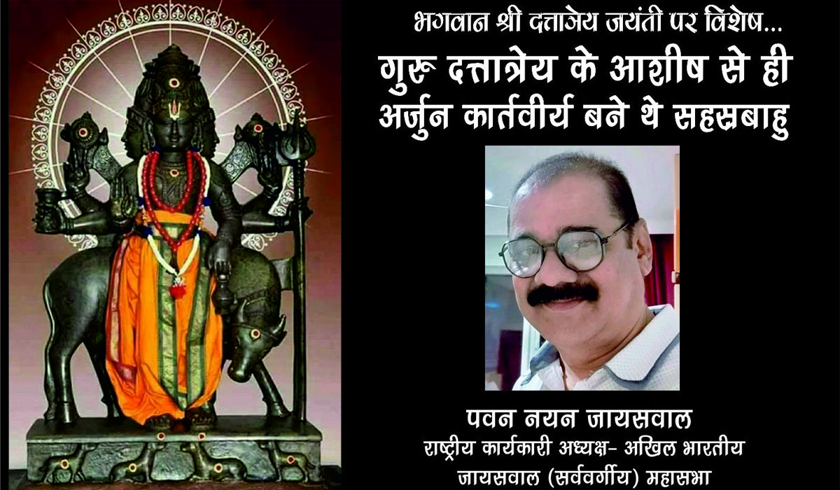 इस वर्ष दत्त जयंती, दत्त पूर्णिमा, मार्गशीर्ष मास की पूनम, कलचुरि संवत् 1778 तदनुसार 04 दिसंबर 2025, गुरुवार को है। हैहय क्षत्रिय वंश के कुलदीपक और कलाल, कलार, कलवार, कलचुरियों के आराध्य और पूर्वज भगवान श्री अर्जुन कार्तवीर्य के गुरुवर्य भगवान श्री दत्तात्रेय हम सभी के लिए परम पूजनीय है क्योंकि श्री सहस्रार्जुन को देवत्व गुरुदेव श्री दत्तात्रेय के आशीर्वाद के कारण ही प्राप्त हुआ था।