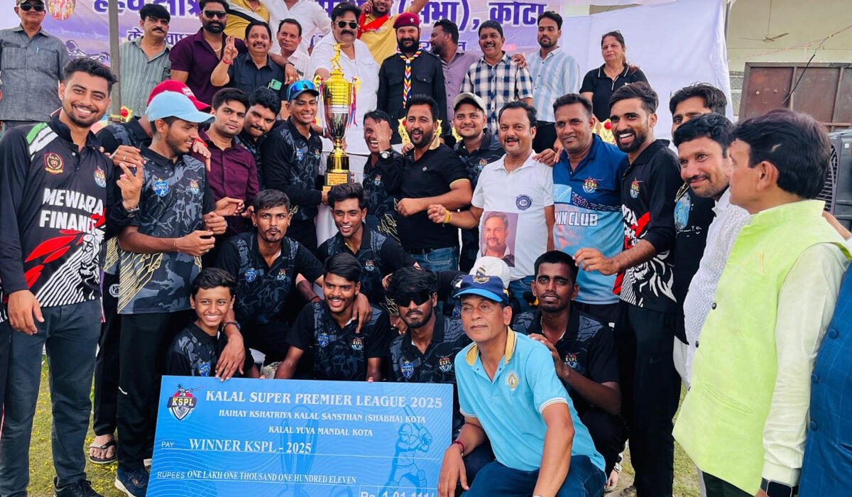 जेवाईएफ मुंबई ने फाइनल मुकाबले में कलाल टाइगर्स कोटा को 8 विकेट से हराकर ‘कलाल सुपर प्रीमियर ली-2025 (KSPL)’ चैंपियनशिप जीत ली है। कोटा के ‘जेके पैवेलियन इंटरनेशनल स्टेडियम’ के क्रिकेट ग्राउंड पर खेली गई इस चैंपियनशिप में ताबड़तोड़ बल्लेबाजी करने वाली मुंबई के इशू राय को ‘मैन ऑफ द सीरीज’ चुना गया जिन्होंने एक शतक और एक अर्धशतक के साथ सर्वाधिक 238 रन बनाए। वहीं, महिला वर्ग में कलाल महिला सांवरिया सेठ इलेवन ने चैंपियनशिप उठाई।