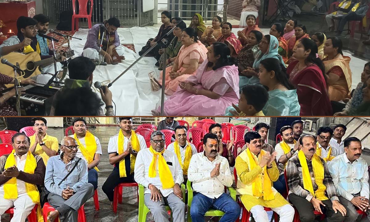 भजन संध्या का शुभारंभ शाम सात बजे संध्या आरती के बाद मुख्य सिंगर यश गुप्ता ने गणेश-वंदना की सुंदर प्रस्तुति से किया। इसके बाद एक से बढ़कर एक नए-पुराने लोकप्रिय भजनों को आधुनिक अंदाज में प्रस्तुत किया। श्यामजी शिवहरे, रजत गुप्ता औऱ सोनू गुप्ता कोरस में उनके साथ सुर मिला रहे थे। गुरप्रीत कौर ‘साहिबा’ हारमोनियम पर संगत दे रही थीं, उन्होंने कुछ खूबसूरत भजन भी गाए। तबला, प्यानो और पैड जैसे साजों को बाहर से बुलाए कलाकारों ने संभाला। यश गुप्ता भजन गायकी के साथ-साथ गिटार पर अपनी उंगलियों के कौशल से भी हतप्रभ कर रहे थे। एक के बाद एक सुंदर भजन प्रस्तुतियों से अंत तक ऐसा आध्यात्मिक माहौल बन गया कि वहां मौजूद सभी लोग भक्तिभाव में तल्लीन होकर स्वतः ही थिरकने लगे। दो-ढाई घंटे कब बीत गए, पता ही नहीं चला। रात करीब साढ़े नौ बजे कार्यक्रम का समापन हुआ।