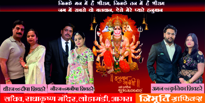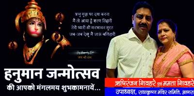 चैत्र पूर्णिमा भगवान शिव के रुद्रावतार हनुमानजी की भक्ति, शक्ति औऱ समर्पण के गुणगान का पावन दिन होता है। माता अंजनी और केसरी के लाल हनुमानजी का जन्म लगभग 85 लाख 58 हजार 112 वर्ष पूर्व त्रेता युग में चैत्र पूर्णिमा के दिन चित्रा नक्षत्र और मेष लग्न में हुआ था। इस उपलक्ष्य में 02 अप्रैल को शिवहरे समाज अपनी धरोहर राधाकृष्ण मंदिर में सुख-समृद्धि एवं अटूट साहस के स्वामी हनुमानजी का जन्म महोत्सव मनाने जा रहा है।