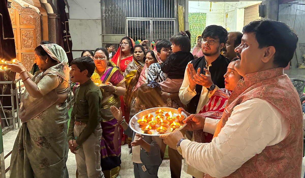 मौका था राधाकृष्ण मंदिर में राम-दरबार एवं अन्य स्वरूपों के पांचवे प्रतिष्ठा (स्थापना) दिवस समारोह का। बता दें कि पांच वर्ष पूर्व 21 फरवरी, 2020 को महाशिवरात्रि के दिन ही मंदिर में तीन दिवसीय ‘श्री शिव पंचायतन प्रतिष्ठा (स्थापना) महोत्सव’ का शुभारंभ हुआ था जिसके अंतर्गत संकटहरण महादेव (शिव-दरबार) के साथ ही राम दरबार, दुर्गा मां और हनुमानजी के स्वरूपों की प्राण-प्रतिष्ठा पूर्ण विधिविधान से कराई गई थी। शिव-दरबार और हनुमानजी के स्वरूप की स्थापना मंदिर प्रबंधन की ओर से कराई गई थी, जबकि राम दरबार की स्थापना मंदिर कोषाध्यक्ष श्री कुलभूषण गुप्ता ‘रामभाई’ ने अपने स्वर्गवासी माता-पिता श्री चिरंजीलालजी शिवहरे और श्रीमती ब्रह्मादेवी शिवहरे की स्मृति में कराई थी। दुर्गा मां के स्वरूप की स्थापना श्री धीरज शिवहरे एवं श्री नीरज शिवहरे (त्रिमूर्ति ग्राफिक्स) परिवार ने कराई थी।।