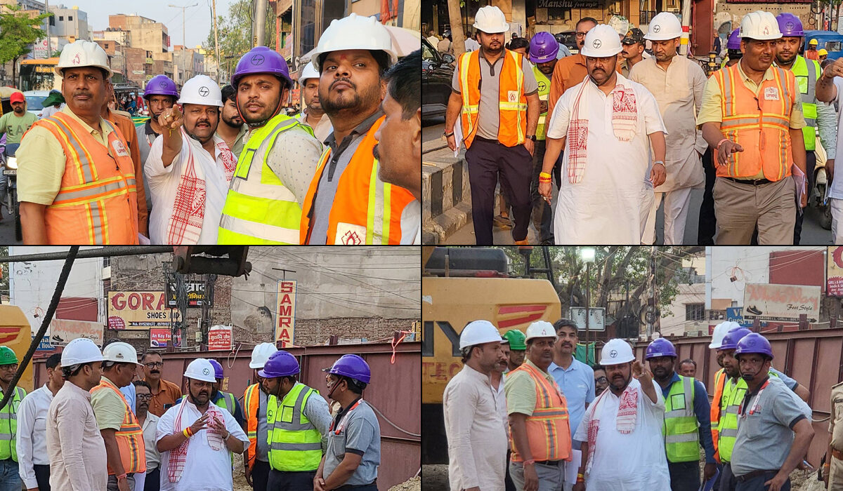विधायक श्री विजय शिवहरे ने शुक्रवार को मुख्यमंत्री योगी आदित्यनाथ के ड्रीम प्रोजेक्ट ‘आगरा मेट्रो रेल परियोजना’ के तहत एमजी रोड पर किए जा रहे निर्माण कार्य का औचक निरीक्षण किया। निरीक्षण के दौरान श्री विजय शिवहरे ने निर्धारित मानक और समयसीमा के अनुरूप निर्माण कार्य सुनिश्चित करने के लिए जरूरी निर्देश मेट्रो-प्रोजेक्ट के अधिकारियों को दिए।
