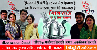 क्लब के यश गुप्ता ‘आशु’, रजत गुप्ता, श्यामजी शिवहरे और सोनू गुप्ता ने शिवहरेवाणी को बताया कि राधाकृष्ण मंदिर में आगामी गुरुवार यानी 26 फरवरी को शाम छह बजे से भजन-संध्या का शुभारंभ होगा। उन्होंने बताया कि ‘संकीर्तन क्लब आगरा’ का गठन दो महीने पहले किया था और तब से हींग की मंडी स्थित राम मंदिर और नाई की मंडी में फूल वाला तिराहा स्थित हनुमान मंदिर समेत चार मंदिरों में प्रस्तुति दे चुके हैं। अब अपने (शिवहरे) समाज की धरोहर ‘राधाकृष्ण मंदिर’ में प्रोग्राम करने का सौभाग्य मिला है, जिसे लेकर वे उत्साहित हैं। उन्होंने सभी स्वजातीय युवाओं, महिलाओं औऱ बुजुर्गों को आगामी 26 फरवरी को शाम छह बजे से राधाकृष्ण मंदिर में होने वाली भजन-संध्या में आमंत्रित किया है।