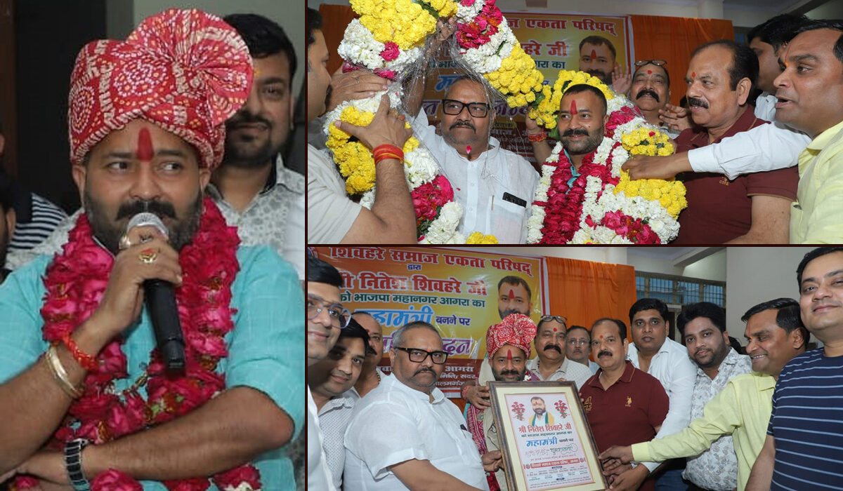 आगरा में दाऊजी मंदिर सभागार में बुधवार को ऐसा ही ‘आदर्श’ नजारा सामने आया, जब शिवहरे समाज के लोग राजनीतिक मतभेदों को दरकिनार कर भाजपा के महानगर महामंत्री नियुक्त हुए नीतेश शिवहरे के स्वागत को पहुंचे। शिवहरे समाज एकता परिषद के बैनर तले आयोजित स्वागत कार्यक्रम में उत्साहित समाजबंधुओं ने नीतेश शिवहरे का जोशीला स्वागत किया। इस मौके पर परिषद के पदाधिकारियों ने दाऊजी मंदिर के अध्यक्ष बिजनेश शिवहरे और राधाकृष्ण मंदिर के अध्यक्ष अरविंद गुप्ता के साथ मिलकर नीतेश शिवहरे को 21 किलो फूलों की माला पहनाई, और उन्हें सम्मान-पत्र भेंट किया। इसके बाद तो समाजबंधुओं ने एक-एक कर उन्हें फूलमालाओं से लाद दिया। स्वागत से अभिभूत नीतेश शिवहरे ने सभी का आभार व्यक्त करते हुए कहा कि मेरे ‘अपनों’ के इस जोरदार स्वागत ने मेरे हौसले को बढ़ाया है, मैं इसे याद रखूंगा और सदैव आपका ऋणी रहूंगा।