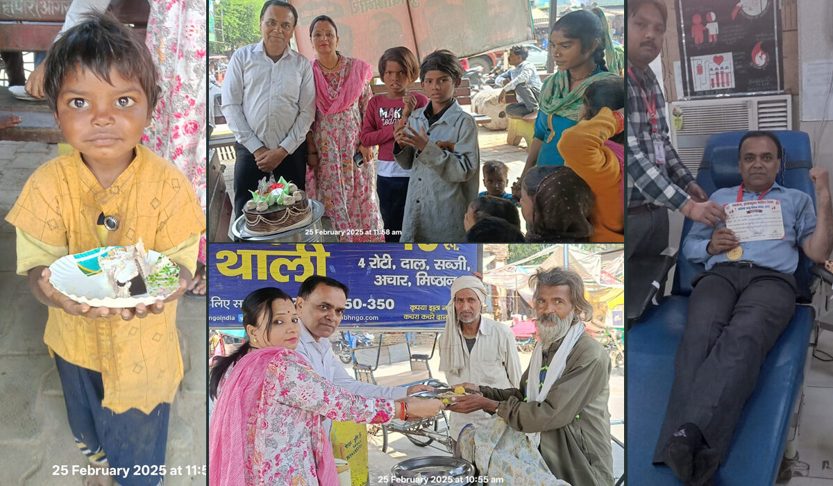 शिवहरे समाज के युवा समाजसेवी श्री सरजू गुप्ता ‘काके’ और उनकी धर्मपत्नी श्रीमती भावना गुप्ता ने अपनी शादी की सिल्वर जुबली बड़ी सादगी और सेवाभाव से मनाई। उन्होंने सड़क किनारे झोपड़-पट्टियों में रहने वाले बच्चों के बीच जाकर केक काटा, और उनके साथ लंच किया। साथ ही रक्तदान कर एक प्रेरक मिसाल भी कायम की।