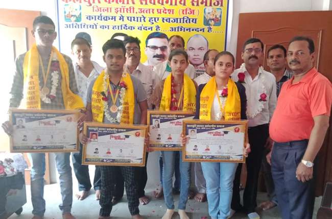 कलचुरी कलार सर्ववर्गीय समाज, झांसी की ओर से इस वर्ष हाईस्कूल और इंटरमीडियेट की बोर्ड परीक्षाओं में उत्कृष्ट अंक पाने वाले 23 मेधावी बच्चों का सम्मान किया गया। कोरोना महामारी को लेकर सरकार द्वारा दिशा-निर्देशों के अनुपालन में कार्यक्रम का स्वरूप बहुत सूक्ष्म रखा गया। मुख्य अतिथियों ने कहा कि शिक्षा सिर्फ शब्दों का ज्ञान नहीं है बल्कि अच्छा इंसान बनने के लिए जरूरी सीख भी देती है।